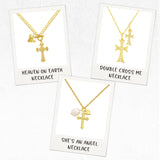 Indulge in our Heavenly Bundle, featuring 3 adorable and heavenly jewelry pieces: Double Cross Me Necklace, She's An Angel Necklace, and Heaven On Earth Necklace. Each one adds a touch of divine cuteness to your outfit.